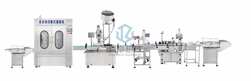 人工把瓶放到送瓶轉盤上-自動灌裝-自動理蓋下蓋-自動鎖蓋-自動打碼-自動貼標-人工收瓶